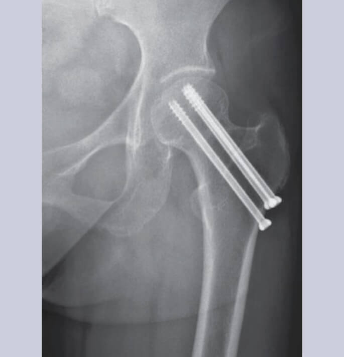 Bij een jonge patiënt wordt op dat moment beslist om ofwel een schroefosteosynthese uit te voeren (als de breuk niet verplaatst is) of ook een totale heupartroplastie uit te voeren.