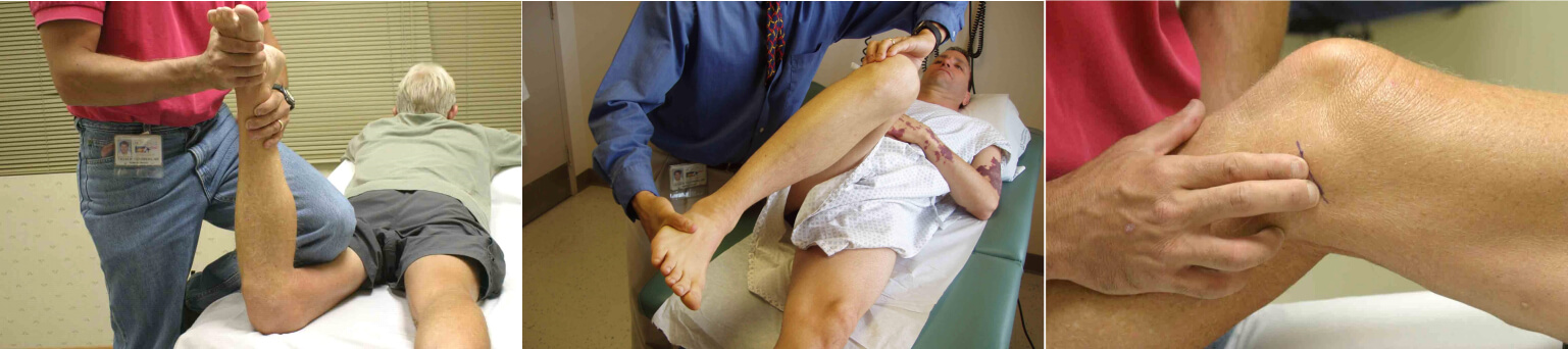 • De hamstring pezen welke van aan de onderzijde van het bekken doorlopen en aanhechting op de binnen voorzijde van het onderbeen.